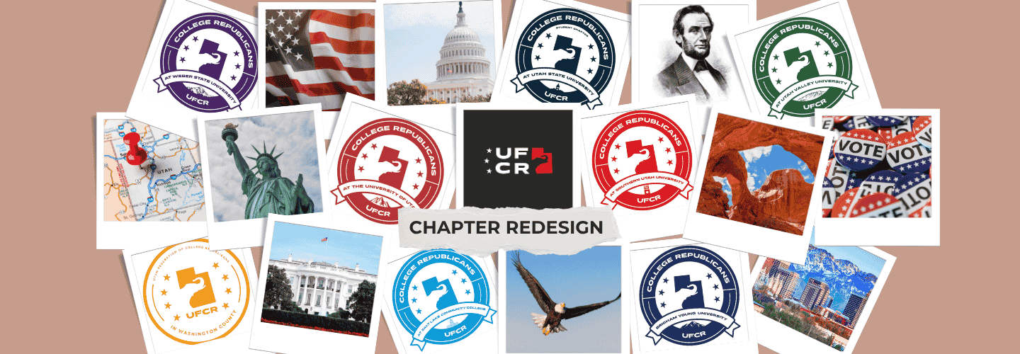 The Utah Federation of College Republicans (UFCR) is leveling up its game with a bold new chapter rebrand that's turning heads and rallying the ranks! Today, we're excited to reveal custom-designed logos for each of our dynamic chapters, paired with sleek, branded pop-up banners, table covers, and a suite of promotional essentials that scream conservative pride and campus energy.